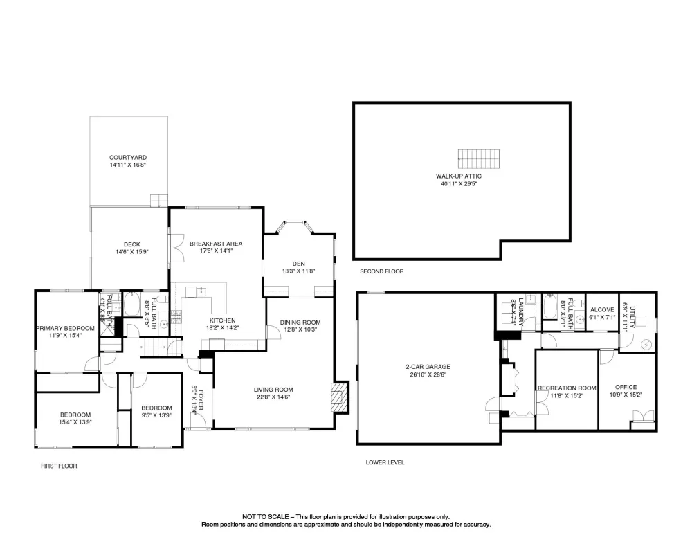 Wonderful Ranch-style home located on Summit's desirable Northside in the sought-after Lincoln Elementary School District. Move-in ready and filled with natural light, the home features an open floor plan with a spacious Living Room that flows seamlessly into the Dining Room ideal for everyday living and entertaining.The eat-in Kitchen opens to a huge breakfast room with vaulted ceiling, skylight and a striking Palladian window overlooking private property. The adjacent den completes the main living area. The first floor offers three generously sized bedrooms with ample closet space and two full bathrooms. The finished lower level provides exceptional flexibility with a Recreation Room, full bath, reading nook, and office. Additional highlights include an oversized two-car garage with abundant storage, plus walk-up attic storage. Set on a beautiful, half-acre lot, this home offers flexible living for many different lifestyles. Fireplace, chimney, flues to be purchased in as-is condition. Gas FP in LR as-is.