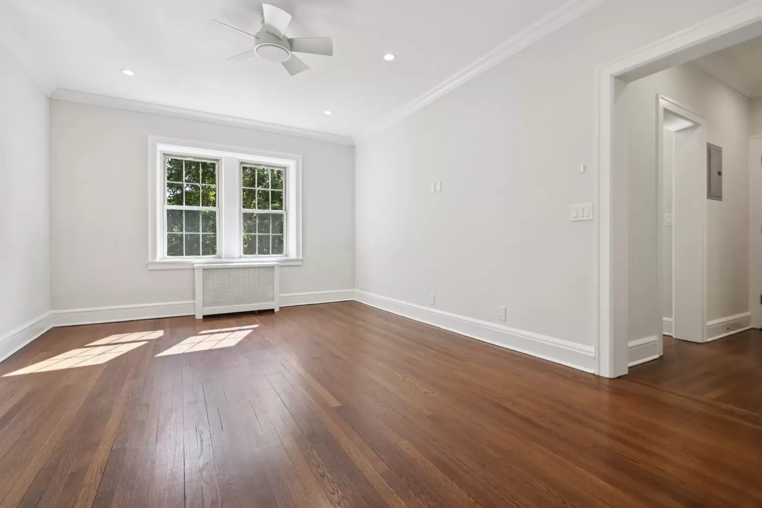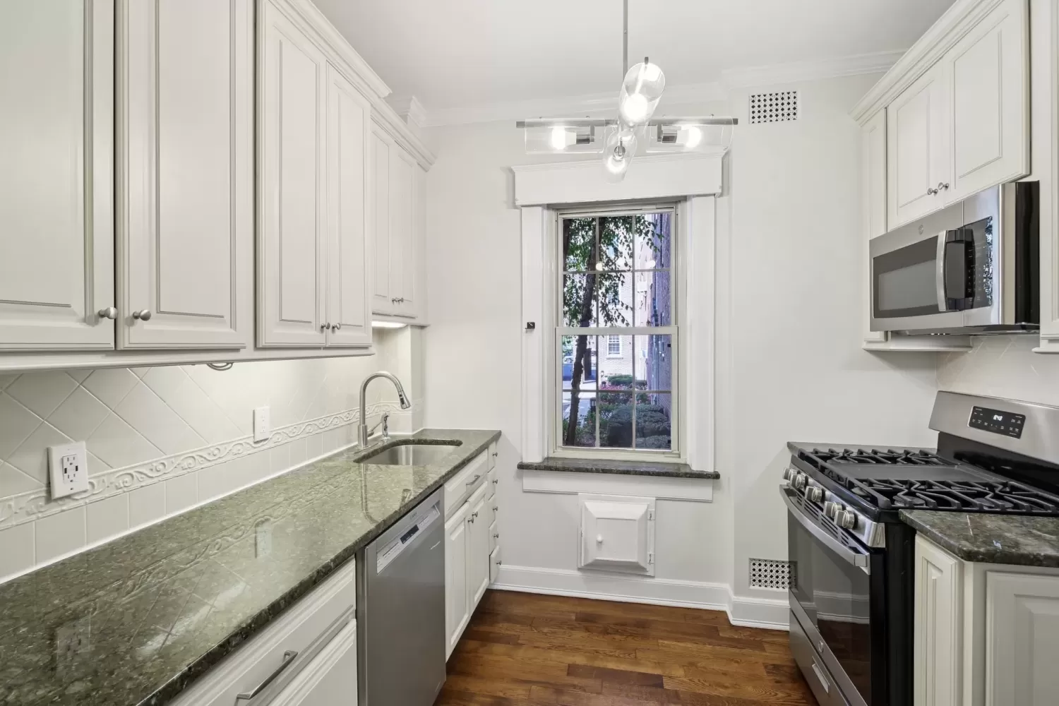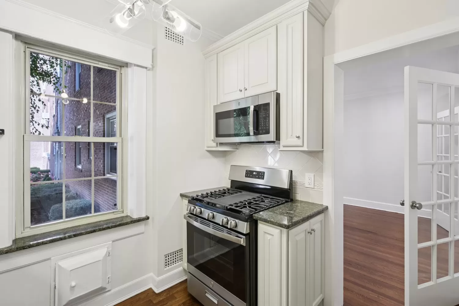 Rare first floor unit with garage parking and laundry in the building. Move in ready, recently finished hardwood floors, freshly painted throughout, updated kitchen and bathroom. Recessed lighting, updated electric. Full time Superintendent in same building. Spacious living room overlooking rear grass/patio area. Flex room w/French doors can be dining room or potential second bedroom. Only 5 steps into the unit. Exercise Room, newly renovated laundry room and dedicated storage room in the basement, in the same building. Use staircase by mailbox to access the basement. The monthly HOA fee of $1610.59 includes heat, water/hot water, taxes, building maintenance, 24/7 superintendent, trash, snow removal. See media for co-op information about the application process. 26 shares of Co-op. Co-op board must approve buyer via application process. Buyer must pay working capital contribution of 3 x monthly HOA $4,831.77 for working Capital Contribution at closing. $450 application fee. Buyer must occupy unit for 12 months before being able to rent out, subject to board approval. Up to two pets if less than 50lbs, otherwise just one. Owner is a licensed realtor.