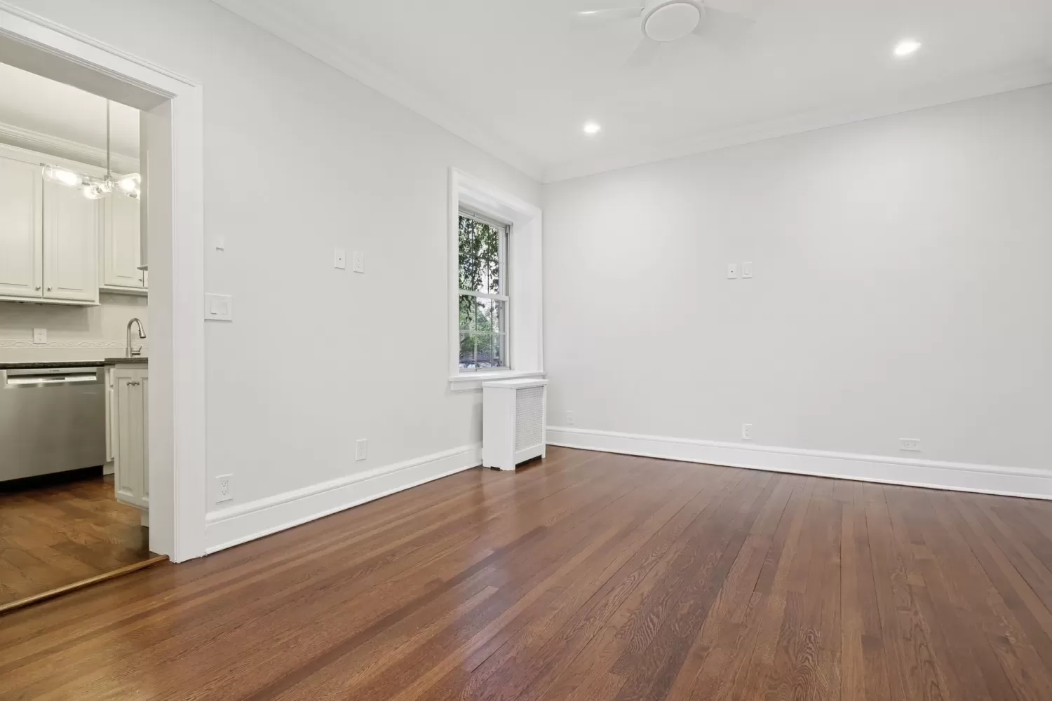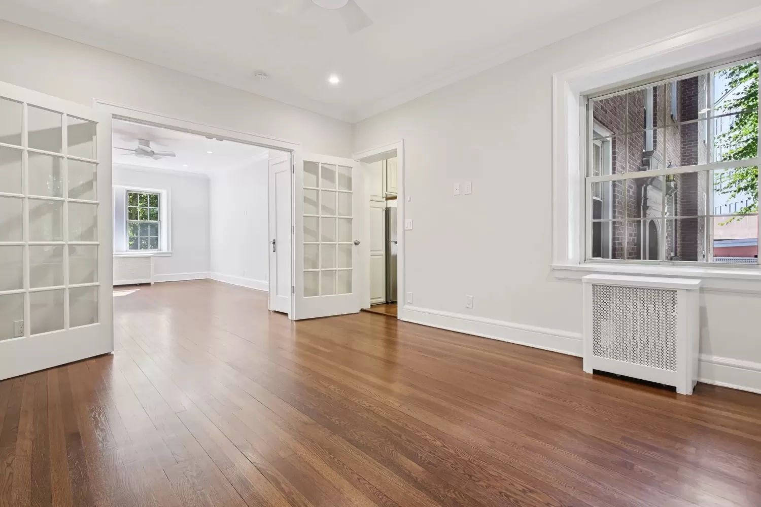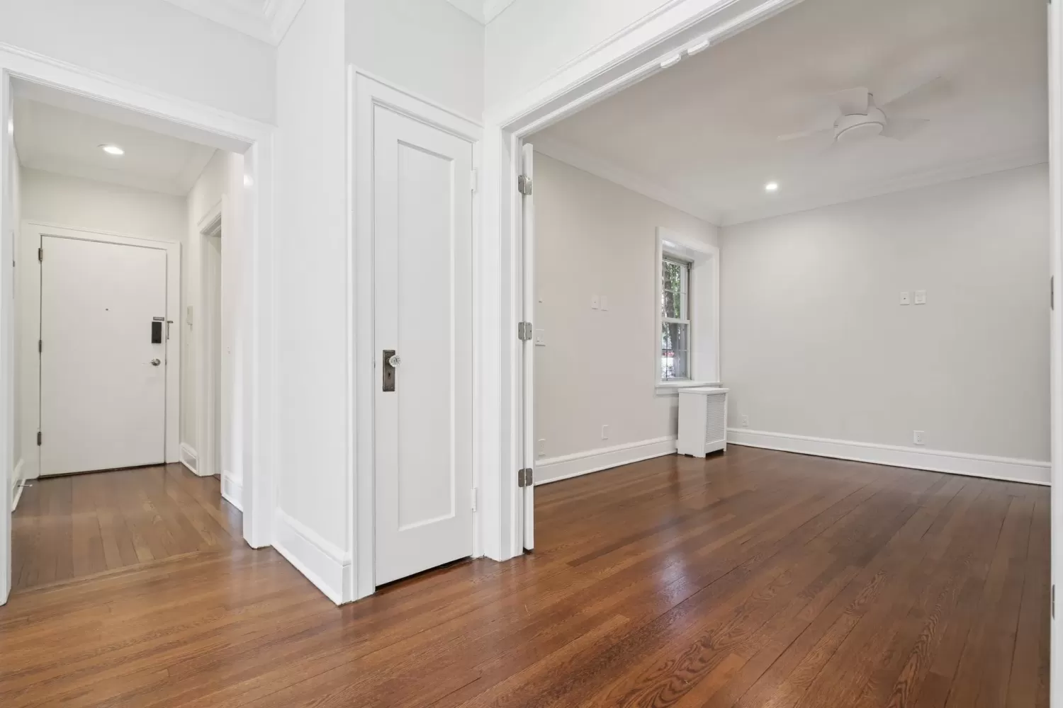 Rare first floor unit with garage parking and laundry in the building. Move in ready, recently finished hardwood floors, freshly painted throughout, updated kitchen and bathroom. Recessed lighting, updated electric. Full time Superintendent in same building. Spacious living room overlooking rear grass/patio area. Flex room w/French doors can be dining room or potential second bedroom. Only 5 steps into the unit. Exercise Room, newly renovated laundry room and dedicated storage room in the basement, in the same building. Use staircase by mailbox to access the basement. The monthly HOA fee of $1610.59 includes heat, water/hot water, taxes, building maintenance, 24/7 superintendent, trash, snow removal. See media for co-op information about the application process. 26 shares of Co-op. Co-op board must approve buyer via application process. Buyer must pay working capital contribution of 3 x monthly HOA $4,831.77 for working Capital Contribution at closing. $450 application fee. Buyer must occupy unit for 12 months before being able to rent out, subject to board approval. Up to two pets if less than 50lbs, otherwise just one. Owner is a licensed realtor.