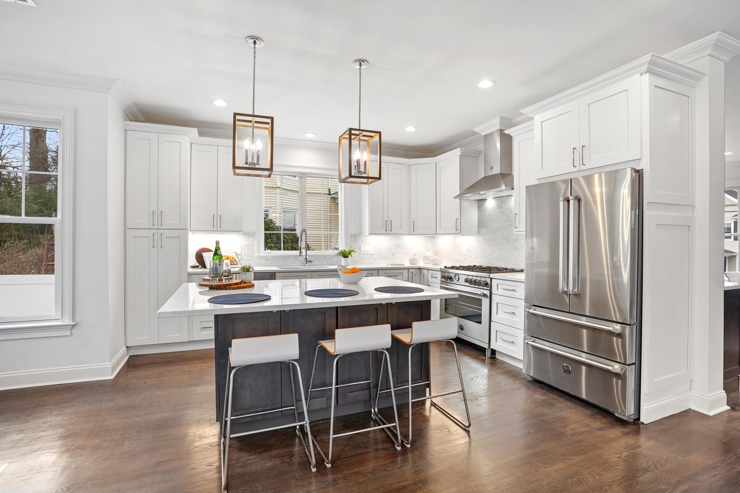 A complete gut renovation (2021) and prime location make this eye-catching Dutch Colonial in one of Summit’s most desirable “block party” neighborhoods the perfect place to call home. Offering a flexible, open floor plan it features ALL NEW hardwood floors, two-zone HVAC, 200 AMP electrical, Hardie® Plank Lap and Shingle Siding, Andersen 200 Series Windows, hardwood floors and more. Its marble and Quartz-clad kitchen outfitted in high-end Bertazzoni appliances, living room with wet bar, sunlit dining room, and a fireside family room make relaxed entertaining is a breeze. Upstairs a luxe primary suite is one of five generous bedrooms complemented by a third floor bonus room with full bath, while downstairs the finished lower level offers a spacious rec room and office. Best of all is the location, only blocks from top-rated Lincoln-Hubbard Elementary School, the Farmers Market, vibrant downtown dining and shopping, and Midtown Direct express service to Manhattan.