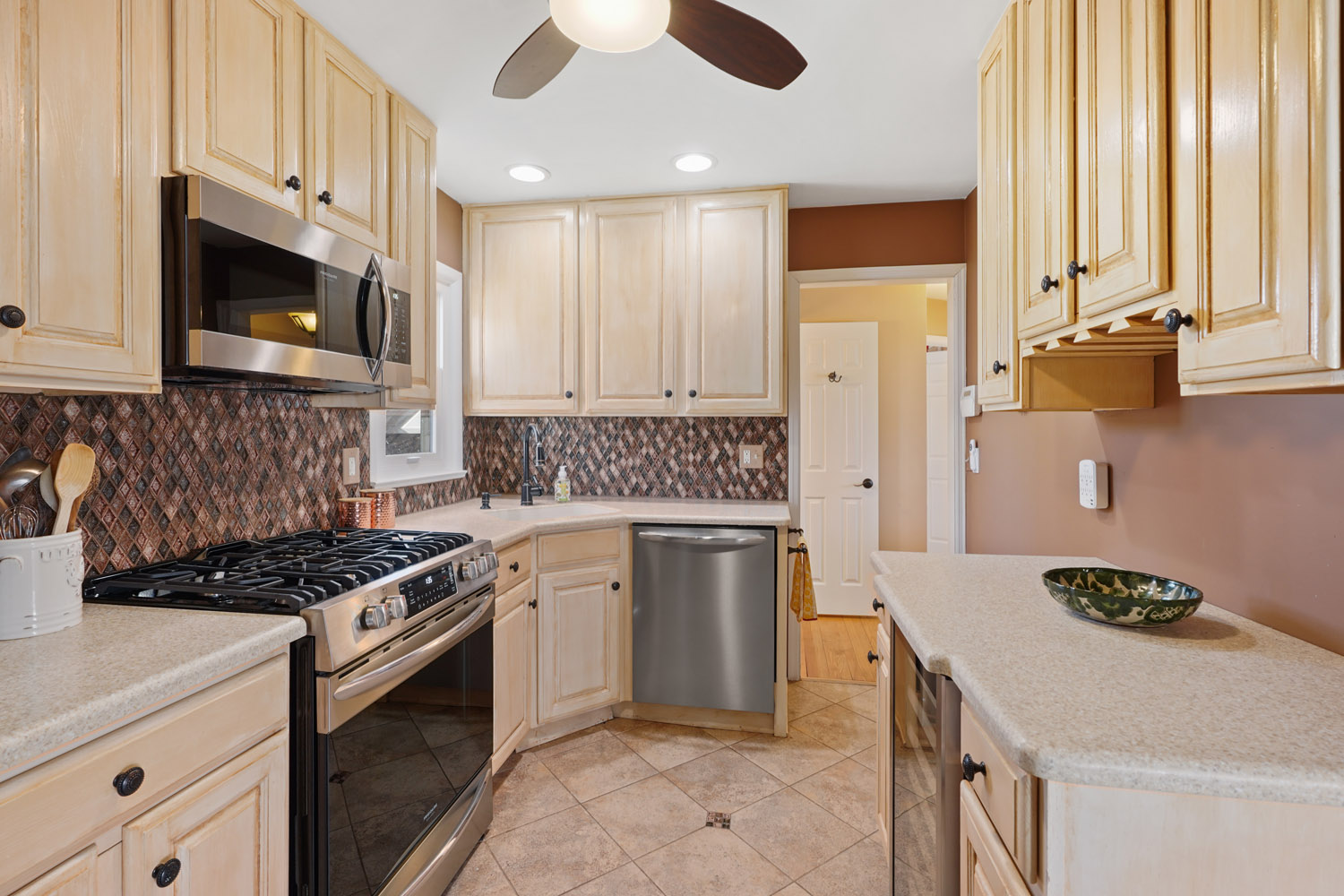 Tucked away on a quiet, tree-lined street, this super cute, move-ready three bedroom, two full bath Cape awaits a proud new owner. The living room and dining room, both with large picture windows, offer sunny living space. The kitchen, fitted with new stainless steel appliances, has a convenient adjacent bonus room, flex space for a porch/mudroom. On the first floor is an updated full bath with adjacent bedroom/office with ample built-in wardrobe closets. Upstairs, an airy primary bedroom offers a wall of closets and nearby updated full bathroom. An additional bedroom and storage closets are on second. The lower level is primed for future finished living space currently offering storage, utility and laundry facilities. New windows, refinished hardwood floors, updated HVAC, too much to list! Fantastic location within close proximity to Washington Elementary School with park area, playground, tennis courts plus nearby shops and NYC transportation. A must see!